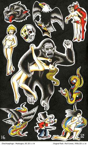 | This highly collectible version of the much-anticipated Revisited: A Tribute to Flash from the Past is guaranteed to be a must-have for any tattoo artist, studio, or enthusiast. Each book is hardbound and comes specially packaged with a hard slipcase, silk bookmarker, gold gilded page ends, and a limited, hand signed and numbered print collaboratively painted by Steve Boltz and Bert Krak. Limited to 250, these are sure to go fast, so gets yours today! |